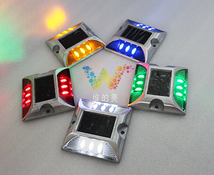 4、双面6灯太阳能道钉有多种颜色可选,灯珠和反光片颜色可以根据客人要求